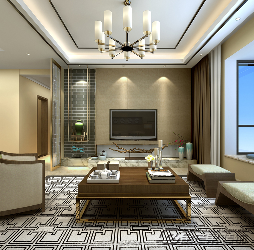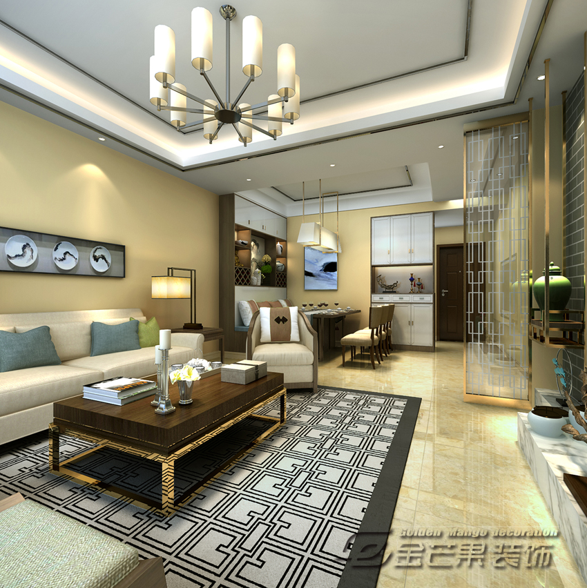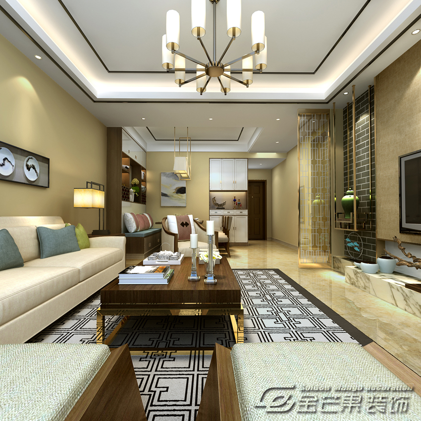 惠景園135㎡ 簡中風(fēng)格 客廳效果圖 金芒果裝飾設(shè)計師 出品