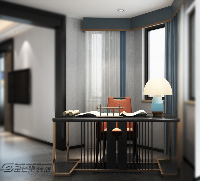 昆明湖瀾庭230㎡ 新中式風(fēng)格 書房效果圖 金芒果裝飾設(shè)計(jì)師:李葉飛 出品