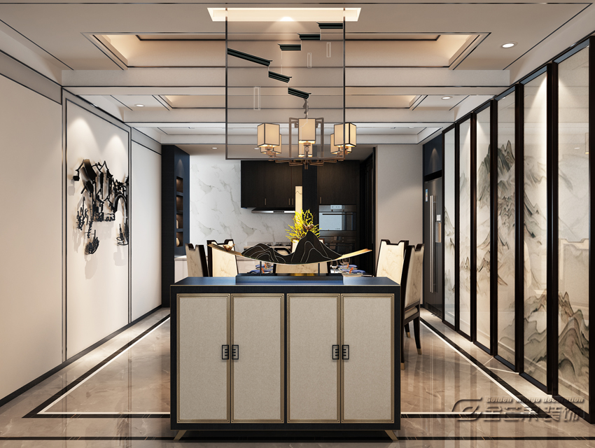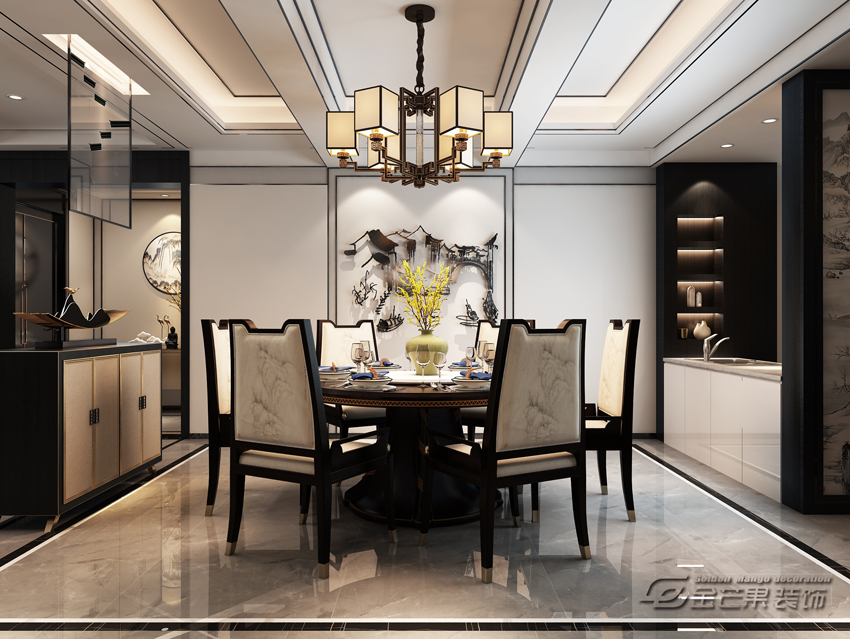 昆明湖瀾庭230㎡ 新中式風(fēng)格 餐廳效果圖 金芒果裝飾設(shè)計(jì)師:李葉飛 出品