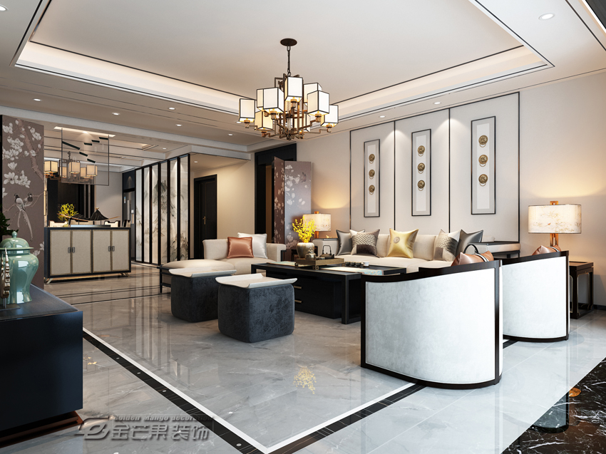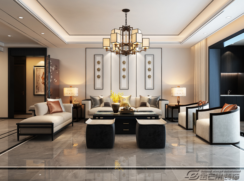 昆明湖瀾庭230㎡ 新中式風(fēng)格 客廳效果圖 金芒果裝飾設(shè)計(jì)師:李葉飛 出品