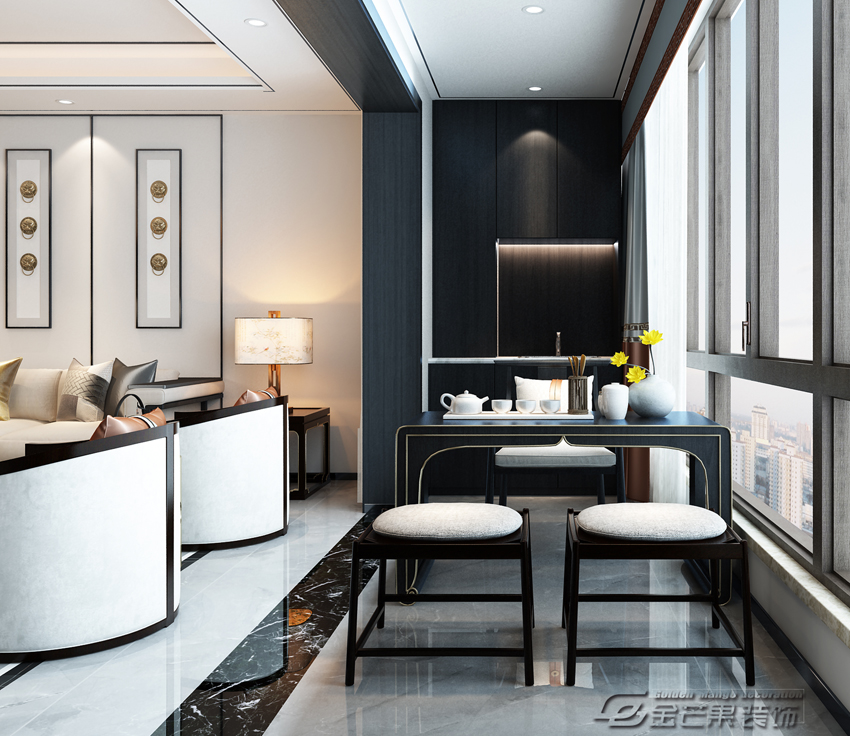 昆明湖瀾庭230㎡ 新中式風(fēng)格 陽臺(tái)效果圖 金芒果裝飾設(shè)計(jì)師:李葉飛 出品