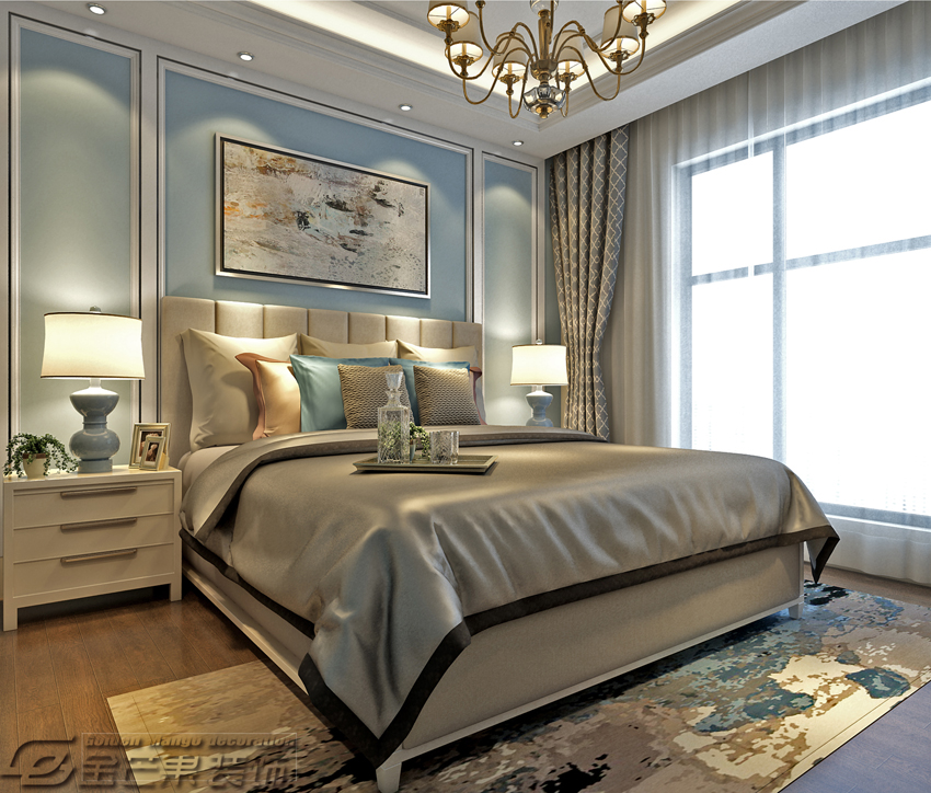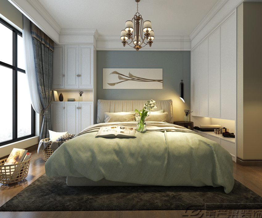 春江明月125㎡ 簡中風(fēng)格 臥室效果圖 金芒果裝飾設(shè)計師:劉峰 出品