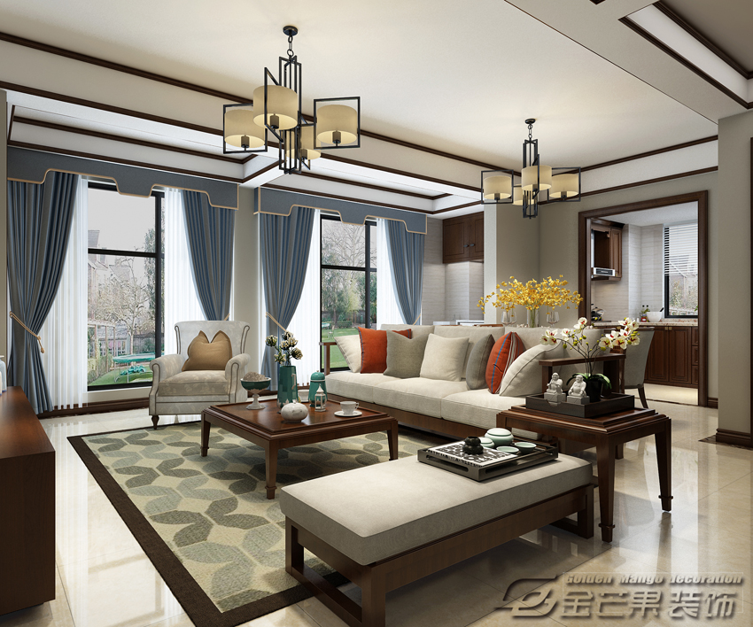 春江明月125㎡ 簡中風(fēng)格 客廳效果圖 金芒果裝飾設(shè)計師:劉峰 出品