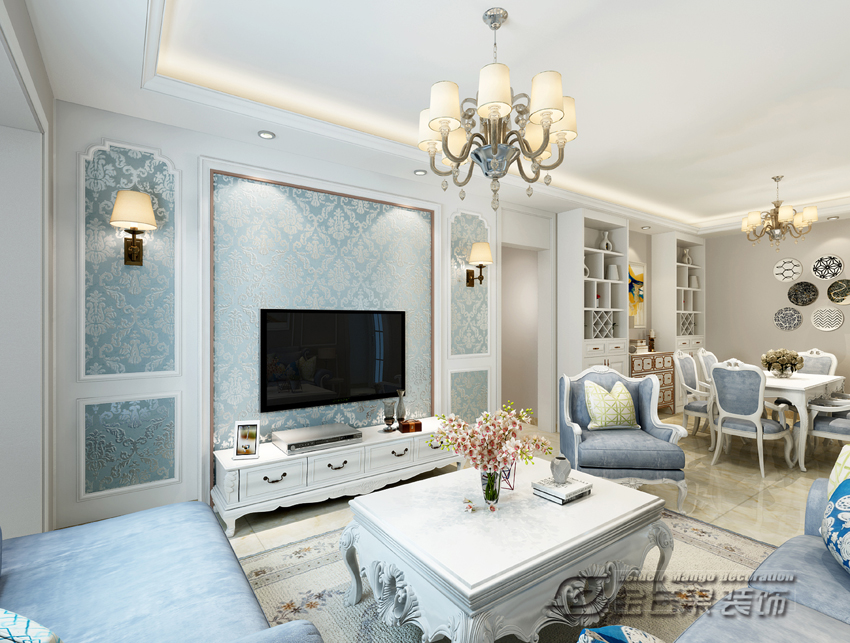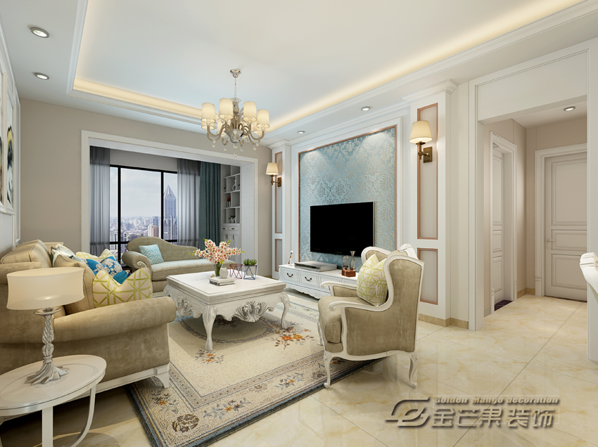 海倫國際123㎡ 簡歐風(fēng)格 客廳效果圖 金芒果裝飾設(shè)計師:浦里哲 出品