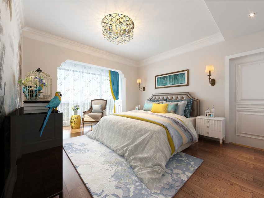 櫻花語140㎡ 美式風格 臥室效果圖 金芒果裝飾設計師:姜海濤 出品