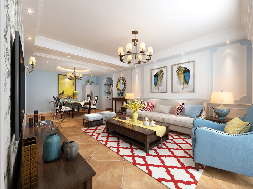 櫻花語140㎡ 美式風格 客廳效果圖 金芒果裝飾設計師:姜海濤 出品