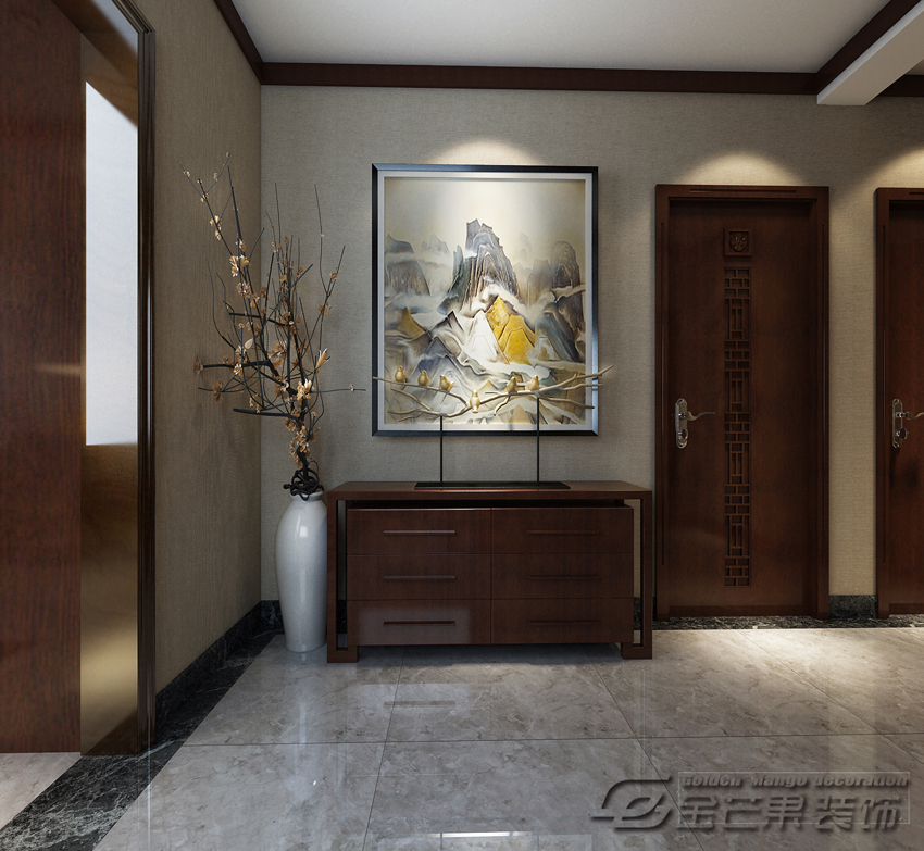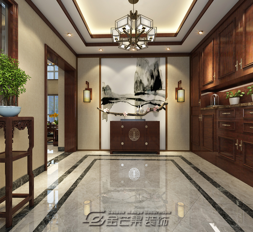 平和花園220㎡ 新中式風(fēng)格 玄關(guān)效果圖 金芒果裝飾設(shè)計(jì)師:劉峰 出品
