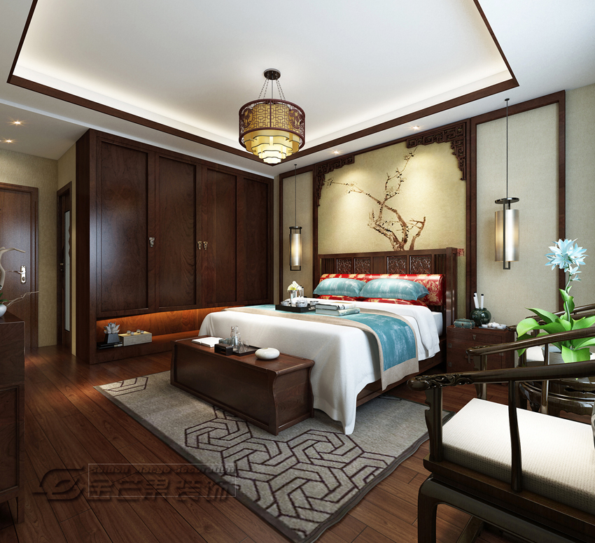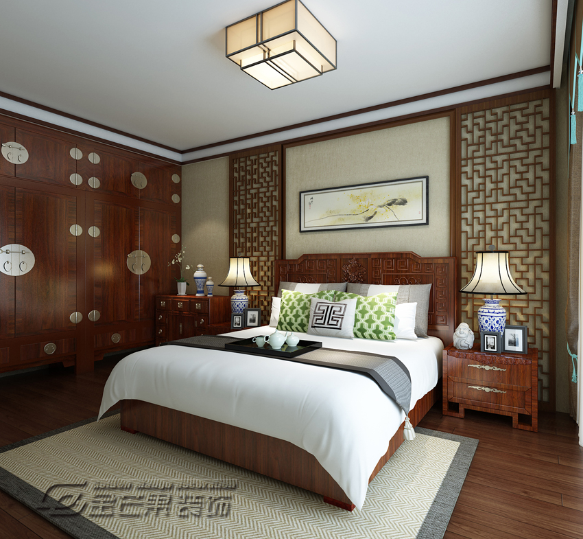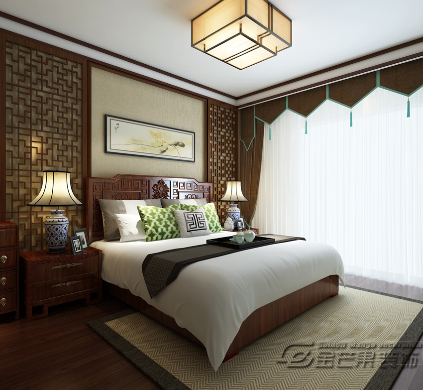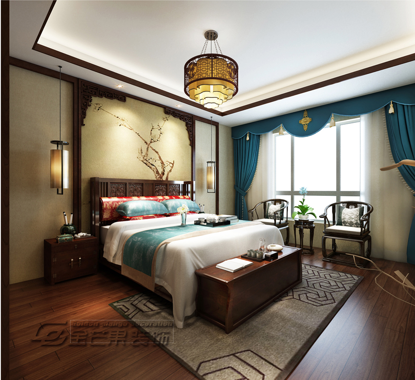 平和花園220㎡ 新中式風(fēng)格 臥室效果圖 金芒果裝飾設(shè)計(jì)師:劉峰 出品