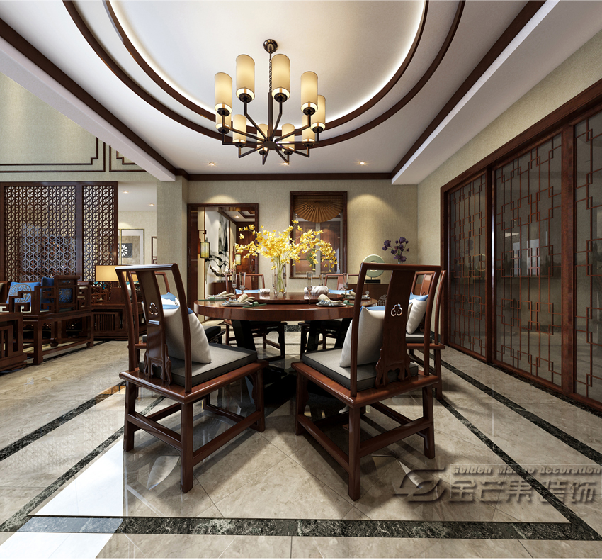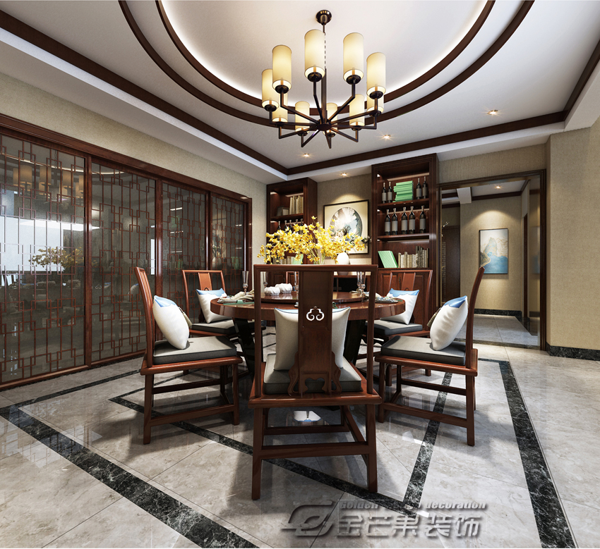 平和花園220㎡ 新中式風(fēng)格 餐廳效果圖 金芒果裝飾設(shè)計(jì)師:劉峰 出品