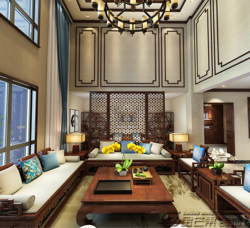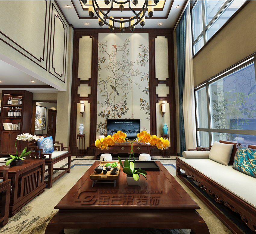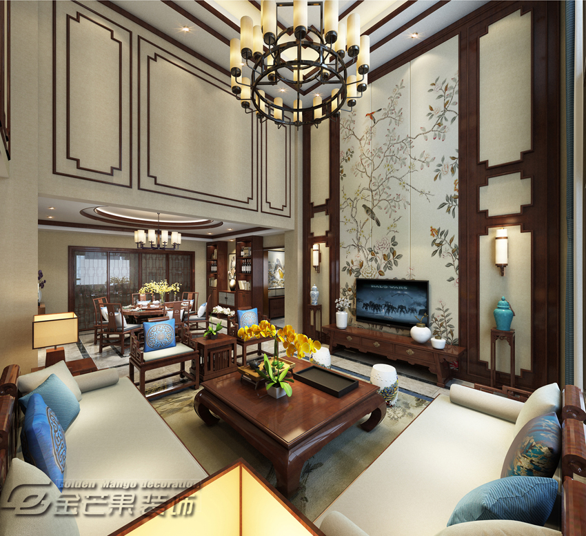 平和花園220㎡ 新中式風(fēng)格 客廳效果圖 金芒果裝飾設(shè)計(jì)師:劉峰 出品