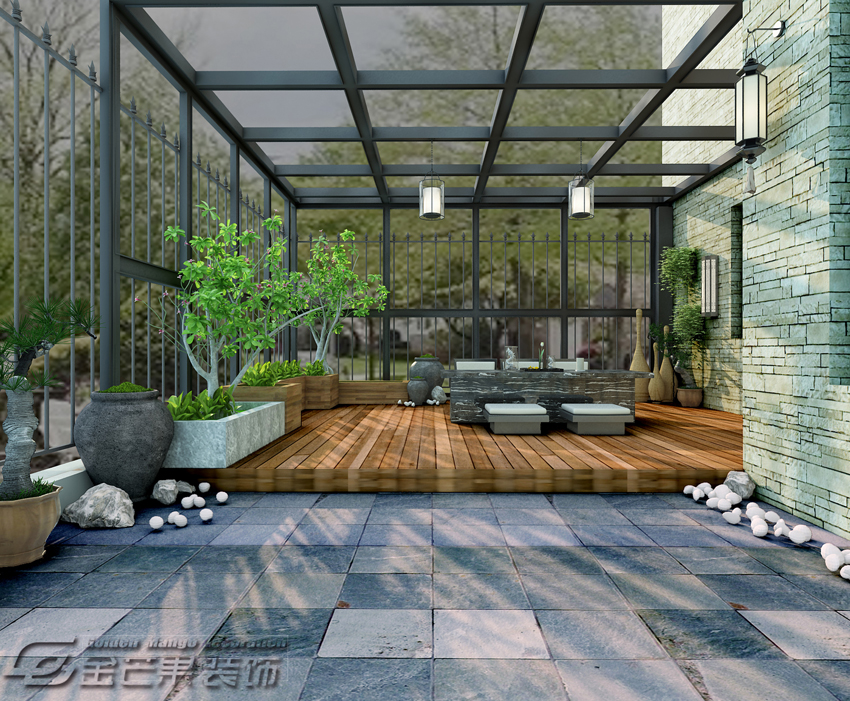 平和花園220㎡ 新中式風(fēng)格 花園效果圖 金芒果裝飾設(shè)計(jì)師:劉峰 出品