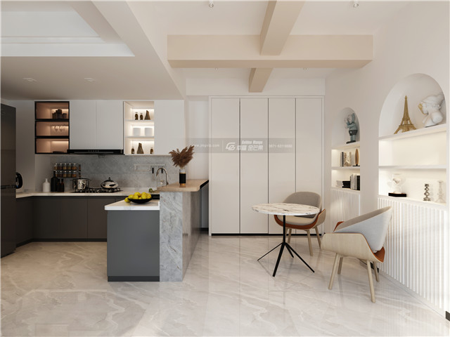 開放式廚房,讓家互動性更好,不管是燈光的選擇還是裝飾材質(zhì)的選擇,都在展現(xiàn)個性的空間環(huán)境,讓烹飪變得更加有格調(diào),彰顯家居個性。