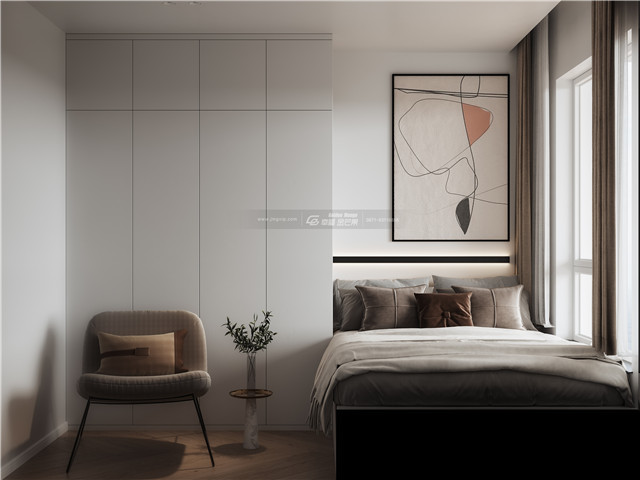 寬大的落地窗將清風和陽光很好的納入屋內,有序而適意的空間節奏,營造舒適的家居生活。