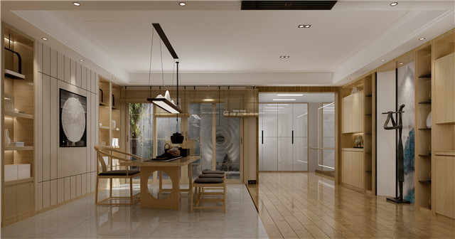 東方的木幾、瓷器、水墨畫和自然光線,在“虛與實(shí)”、“顯與隱”間相互作用,形成具有東方禪意的視覺張力。