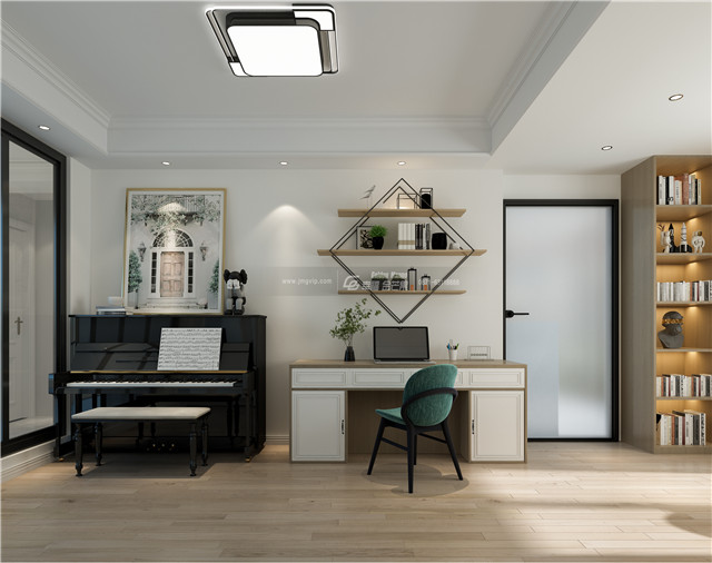 擁有貴族般的至高待遇,舉手投足都變得優雅起來。吊頂上的雕花設計,優雅而不失高貴的墨綠色搭配,華麗的斗柜,品質感滿溢的木地板,處處可見用心,華貴的氣質下,藏不住的格調生活,蔓延全屋的歐式浪漫情調。