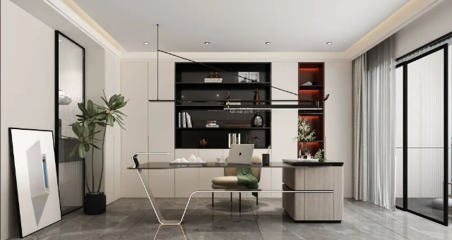 書房整體以高級白奠定空間的主基調(diào),線條感極強(qiáng)的內(nèi)飾尤其注重了實用性和功能性,定制的特色書桌豐富了整個空間的質(zhì)感