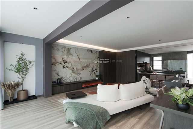 客廳的大落地窗,是明先生的最愛。將原結構的陽臺推門拆除,按照室內的最佳視野定做了落地窗玻璃的尺寸,如一個天然相框般框出室外畫,變幻著昆明四季的美景。