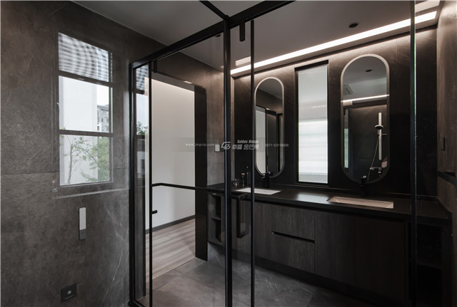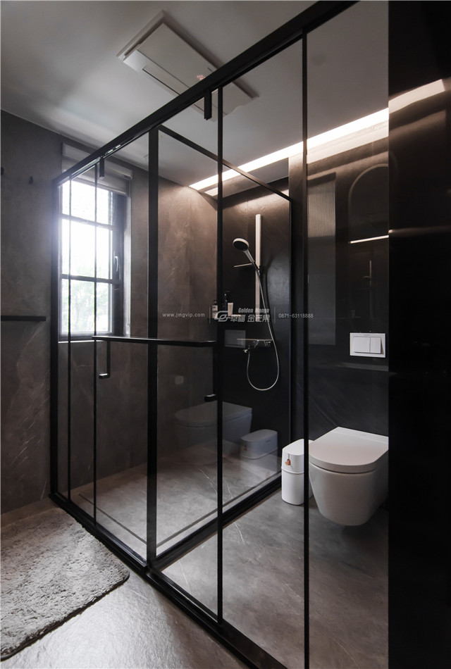玻璃移門做半開放式衛生間的設計,空間私密性更好。通體L形大門套,整體性在細節處理上非常妙。