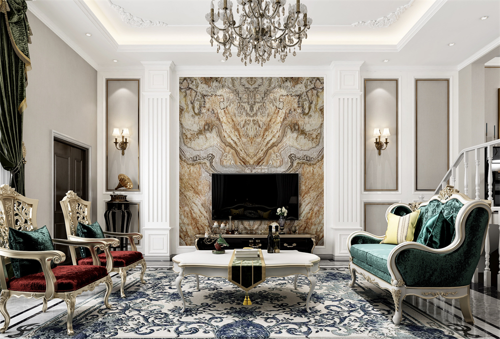 不同材質(zhì)的運(yùn)用,令空間層次更顯豐富,濃烈的色彩、精美的造型給人一種富麗堂皇、高級奢華的感覺!