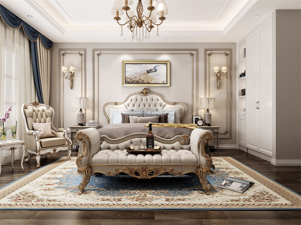 美觀的線條、精益求精的細(xì)節(jié)處理,使得空間質(zhì)感和諧統(tǒng)一,地磚、地毯圖案皆為歐式經(jīng)典花紋,還原歐式濃濃風(fēng)韻,整個(gè)空間大氣磅礴、氣場十足!