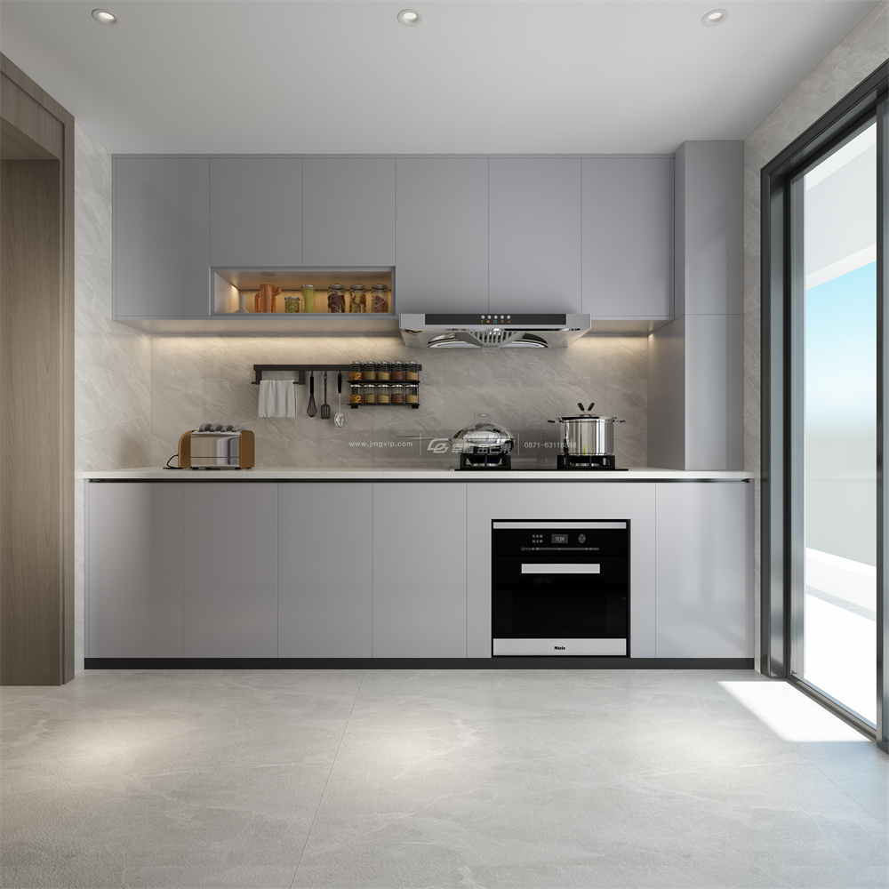 廚房的色彩搭配不宜太過鮮艷,選用低飽和度的灰色系,看上去會更清爽柔和,減輕廚房油煙感!