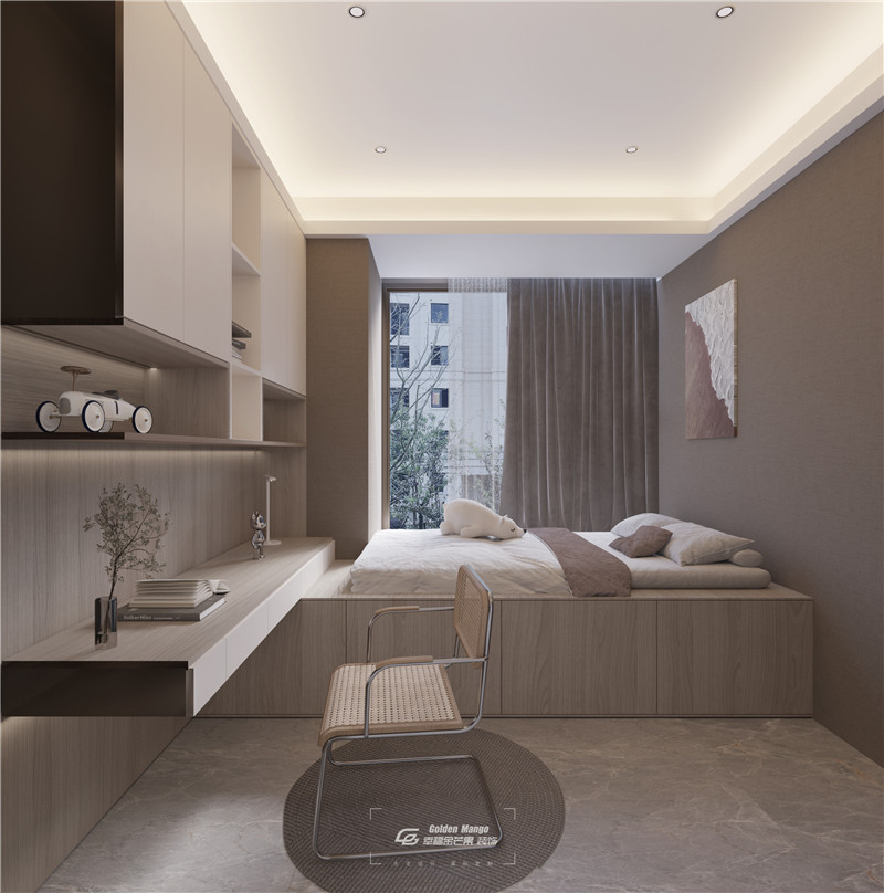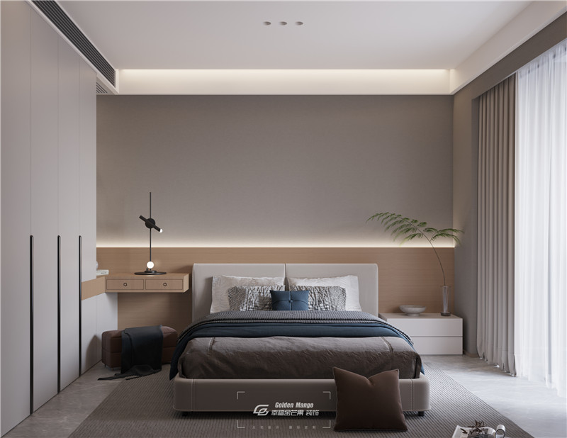 臥室格調講究寧靜,就像睡前輕柔舒緩的助眠曲,予人心安。沒有刻意的矯飾,舒適睡眠成為空間唯一的主題,在滿足基礎功能之后,尋找身心最自由的狀態。身無旁物,心自安寧,更容易讓人自然入睡。