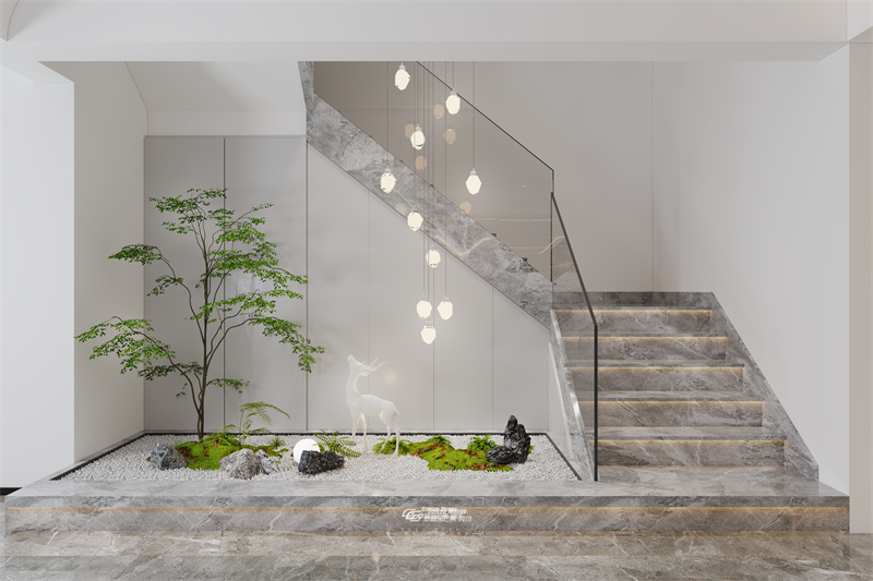 空間運用原始質樸的石材,點綴自然之姿,在喧囂的都市中獨留一方自在靜謐的天地,讓別墅家居更多了一些自然的韻味。