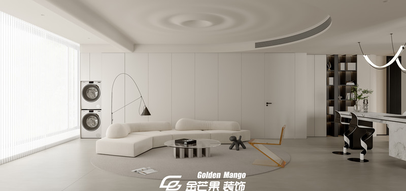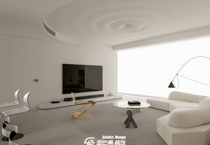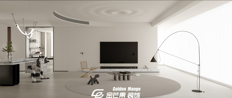 n 作為家的 “顏值 C 位”,客廳的設計直接定下了整套房子的氣質。金芒果的設計師以 “減法思維” 為核心,大面積的淺灰色地磚搭配米白色布藝沙發,如同給空間鋪就了一張干凈的畫布。最妙的是光影的運用—— 整面墻的落地窗沒有做繁復的窗簾,而是選擇了極簡的百葉簾,正午時分,陽光透過葉片在地面切割出斑駁的光影,傍晚則讓落日的暖黃溫柔包裹整個空間。