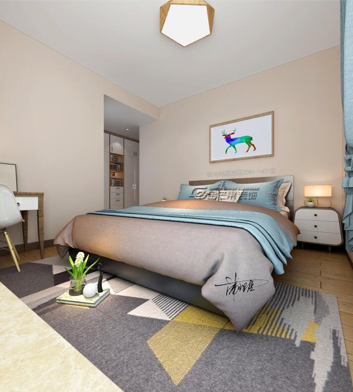主臥室慵懶舒適,有想躺上去的沖動,臥室的色彩搭配,如同冬天的太陽,帶給室內明艷的氣息。