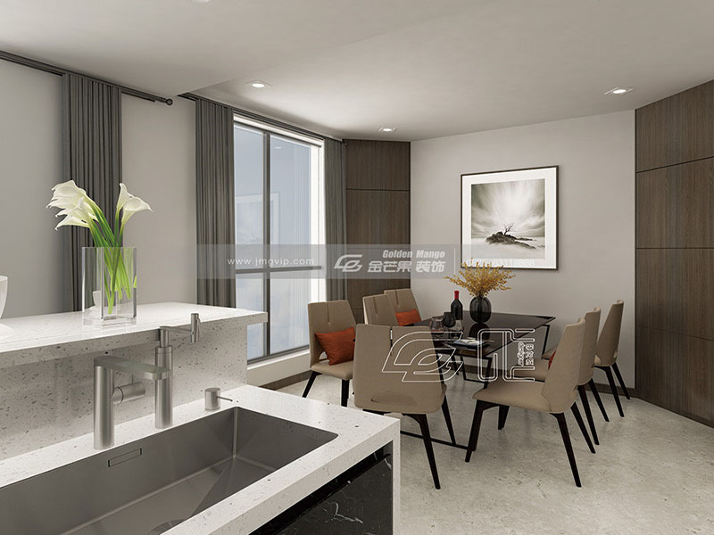 餐廳的設計更加注重功能性和實用性,緊挨著廚房,在日常使用中更加的方便快捷,也增加空間的使用率。方桌更貼合此空間的形狀,更實用。這也是現代風格中“最省力”主題的體現。