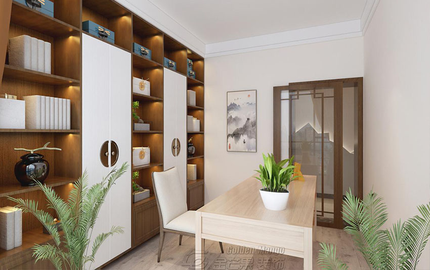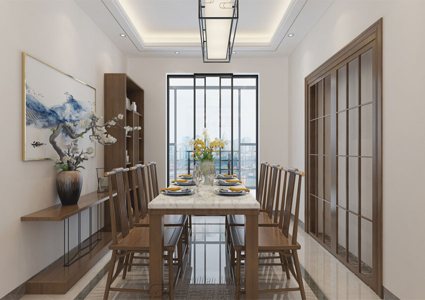 新中式風格已然成為當下裝修風格主力中的一員,融入現(xiàn)代元素。整體以白色、梨木色為色調(diào)。清新、淡雅。