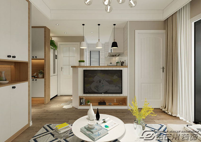 53㎡的戶型在設計師的精心設計下。變得寬敞、美觀。在空間布局上非常的合理,整上以暖色燈光和白色來渲染,帶來家需要的溫暖。