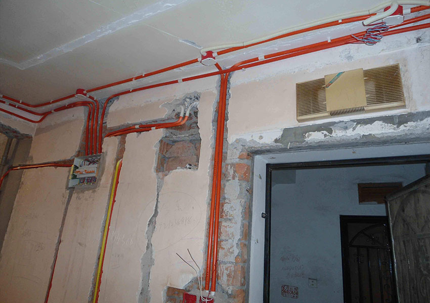 管線每隔1米用線卡固定,在拐彎處不能用直角過度,應該135度左右的角度過度。檢查線管中的電線是否能輕松抽拉,方便后期的更換。墻壁上一般不橫向開槽,影響結構承重性。