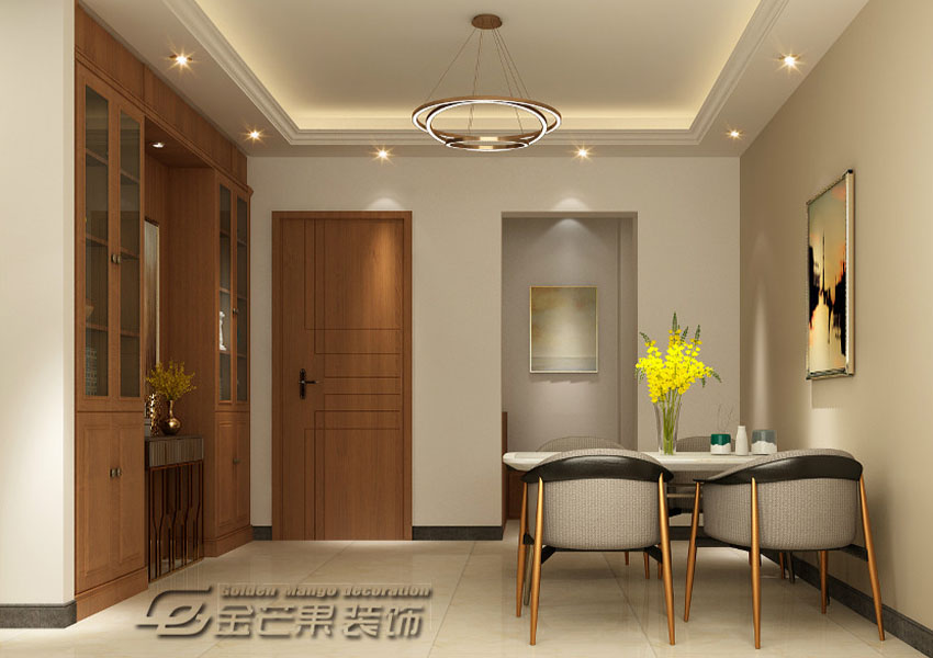 餐廳在布局上沒有絲毫的違和感,柜子則用中式元素,有著些許的歷史氣息。椅子提供著舒適的坐感,插花顯得清新、浪漫。