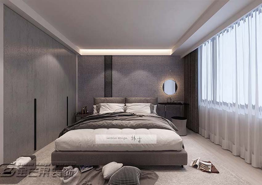 隨意擺放的物品是屋主人隨性的體現(xiàn),一切都是以簡為主,淡紫色的床頭背景控制著整體的感覺,簡單的鏡面,簡單的梳理臺,整體性更強的柜體。燈具的運用上也獨具特色。