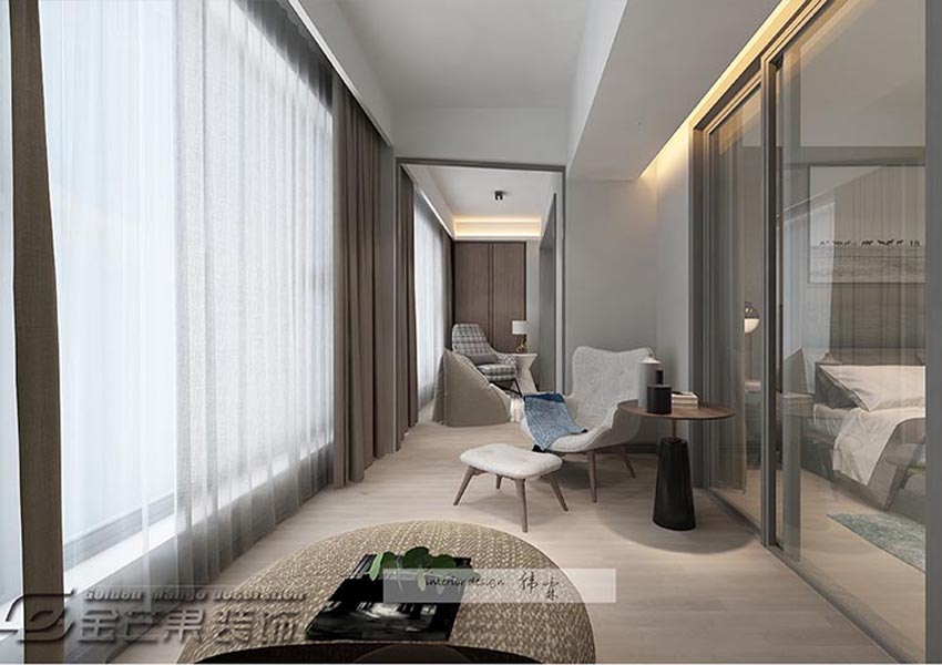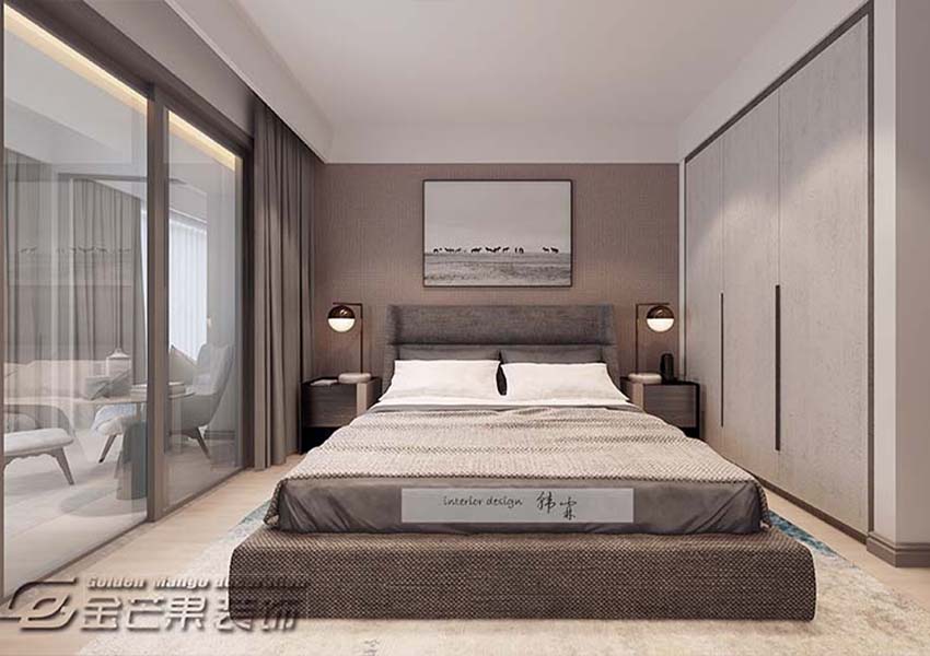 落地的玻璃推拉門隔開成臥室,在風格上顯得開放、大方。臥室的陽臺和客廳的陽臺相互連接,生活、時尚、享受、獨一無二。臥室里透露著簡與素,在色彩的運用游刃有余。光,以床頭柜的兩個白熾燈和陽臺頂?shù)臒魩Ч饩€為主,注重休息上的體驗。