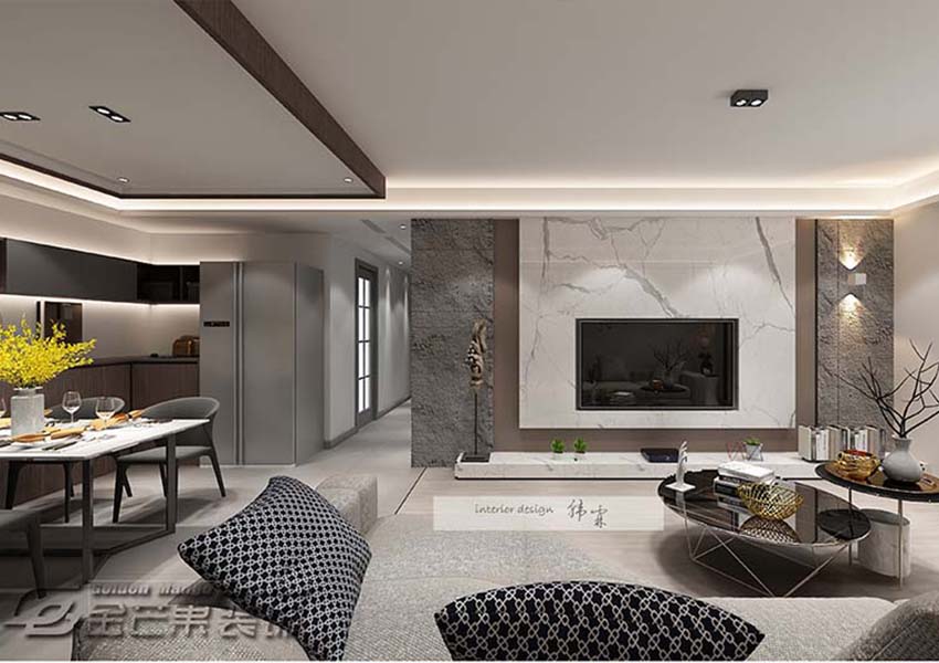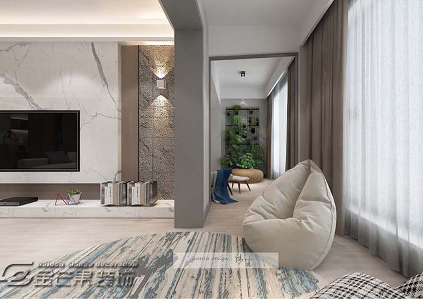 整個空間沒有主燈的設(shè)計,顯得平易近人,電視機鑲嵌到墻體里面,落地的電視柜設(shè)計顯得時尚前衛(wèi)。陽臺布置兩個懶人椅,增加生活上的體驗,沙發(fā)風格的選擇完美的契合了整體,在電視背景——大理石的作用下,整體顯得優(yōu)雅范十足。長條陽臺增添了生活樂趣的更多可能。