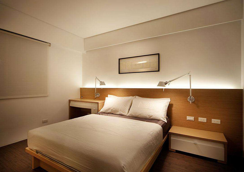 臥室電視等預(yù)留插座,離地11cm設(shè)置,床頭柜上10cm位置預(yù)留插座,方便手機和臺燈的使用。房間使用空調(diào)的在離地200cm處設(shè)置,飄窗處也應(yīng)預(yù)留插座。