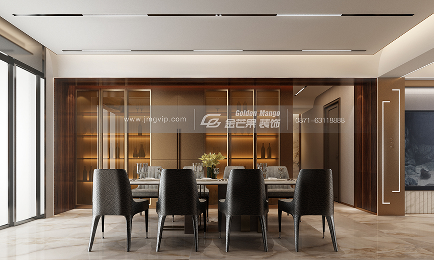 棕色的玻璃柜體呈現低調的華貴感,恰到好處的奢華與現代感十足的氛圍,與香港國際大都市的時尚氣質不謀而合。精致的餐具和餐桌椅,營造滿滿儀式感。