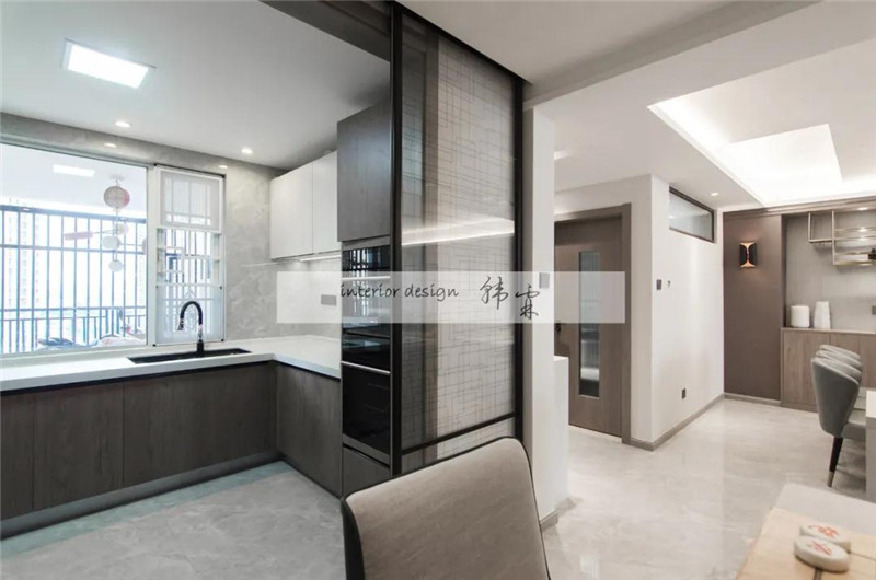 廚房玻璃門,一推一拉,封閉和開放式廚房自由切換。