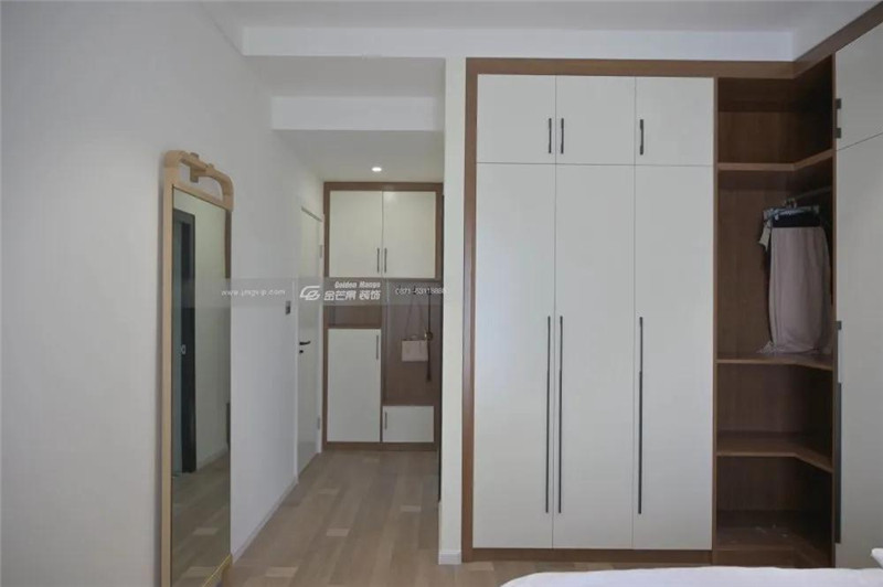在和設計師交流設計方案時,業主提出需要大量的儲物空間。臥室一整面墻,頂天立地的柜體可以收納大量雜物,把更多的空間留給生活。