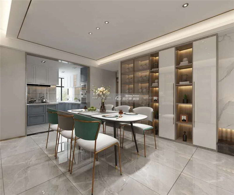 2.過道上設(shè)計(jì)定制酒柜,彌補(bǔ)了過道空間浪費(fèi)的問題又兼顧收納和展示功能。