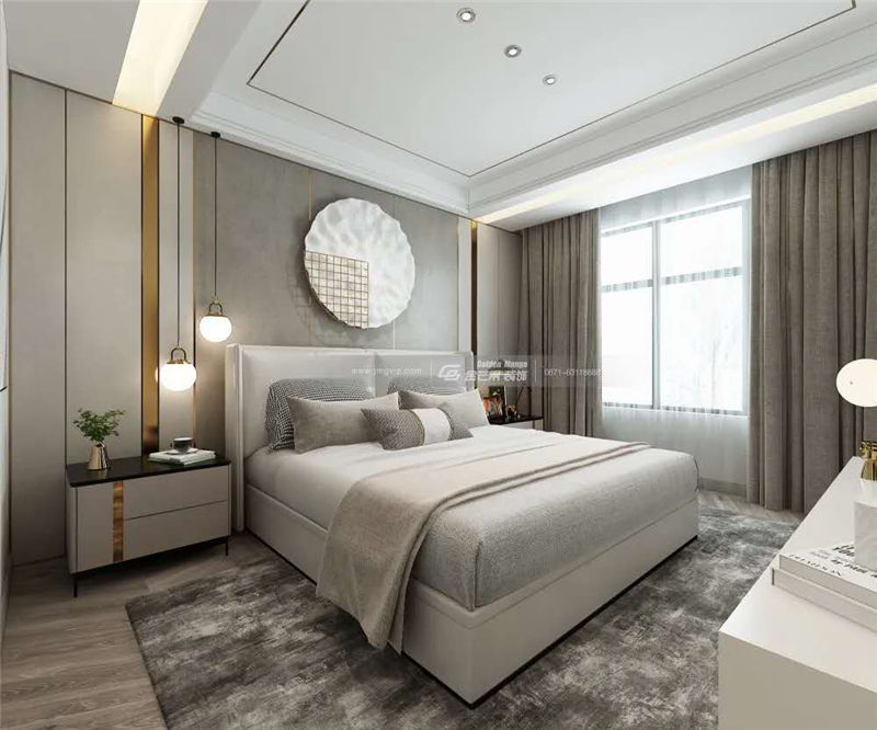 臥室作為每天生活中的加油站,最注重的是舒適。置身其中,你會發(fā)現(xiàn)區(qū)別于過去的奢華設(shè)計(jì),整個空間既沒有過于繁復(fù)的造型,亦沒有豐富色彩的疊加,而是以一種直撩心底的優(yōu)雅魔力,給人帶來輕松舒適、溫馨大氣的感覺。純凈、簡潔的空間,溫潤的背景墻和地板營造舒適的氛圍;床頭背景墻的掛飾讓整體空間更加文藝、有趣、有氣質(zhì),不顯單調(diào),在細(xì)節(jié)之處彰顯高級感。
