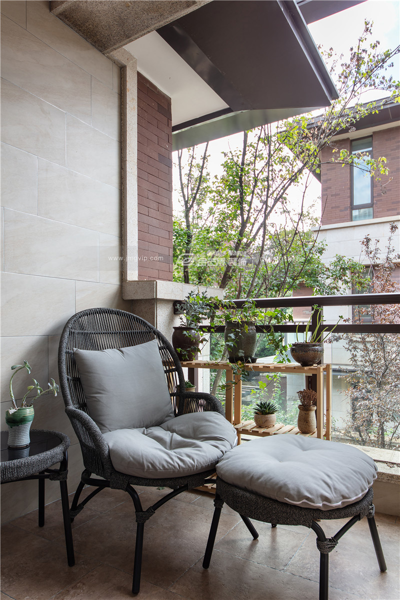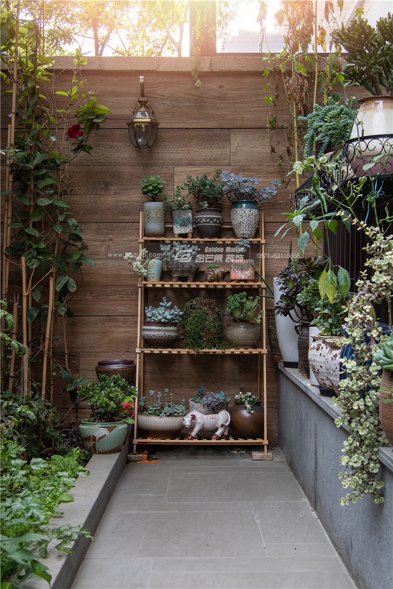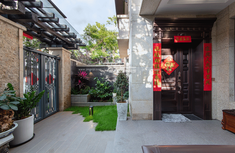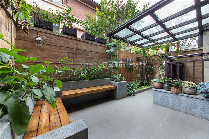1樓入戶是一個有情致的小院子,綠植、草地、假山,獨擁一片山水,靜享逍遙自在。