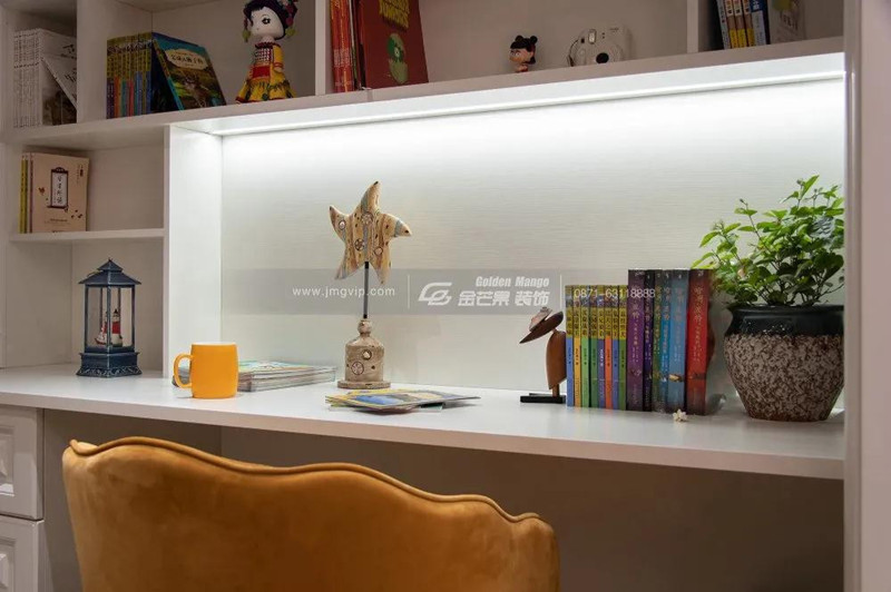 床頭的銀杏葉是空間的亮點,象征堅韌、純潔的愛情,敘說相識于英國留學的女業主和男業主的浪漫愛情故事,把它溫柔的寫進生活里。