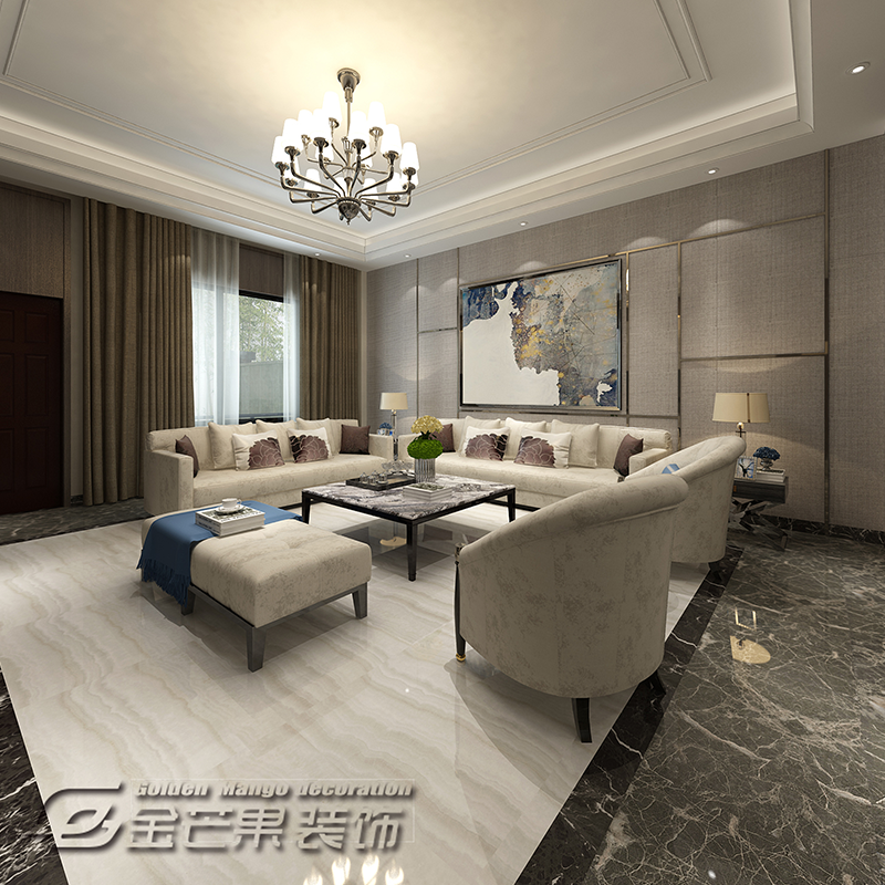 整體空間以黑白灰為主色調(diào),簡約大氣,舒暢有質(zhì)感,搭配大理石的地板,典雅的燈飾和優(yōu)雅花紋的抱枕,整個空間既舒適又大氣。