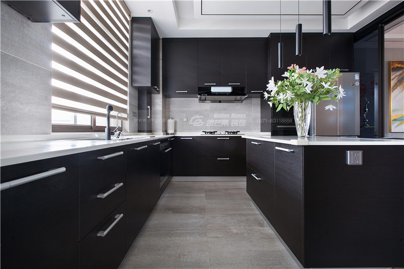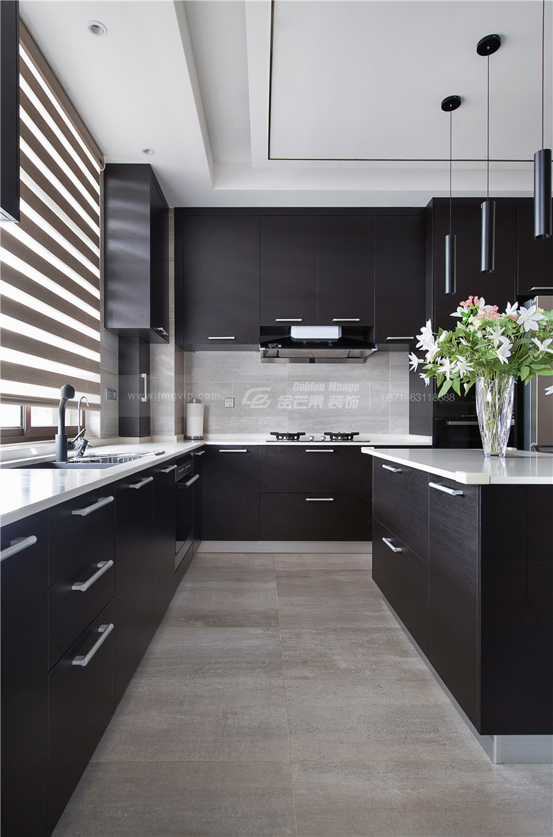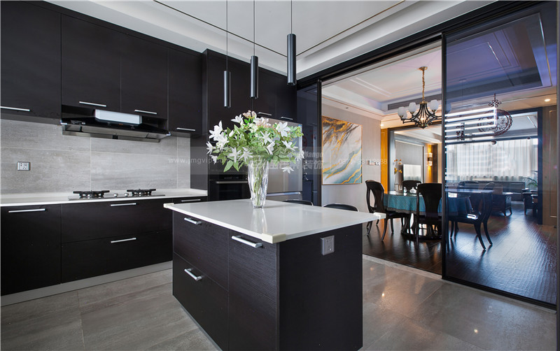 精美的燈飾,大面積的儲物空間,同時滿足中西廚的烹飪需求,精致的生活從廚房開始。