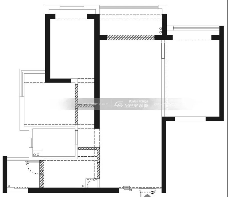2、廚房打通,增大廚房空間;將原廚房位置的放冰箱處墻體拆除,更多空間留給干濕分離的衛(wèi)生間,有利于衛(wèi)生間功能互不干擾,增加衛(wèi)生間濕區(qū)空間使用。
