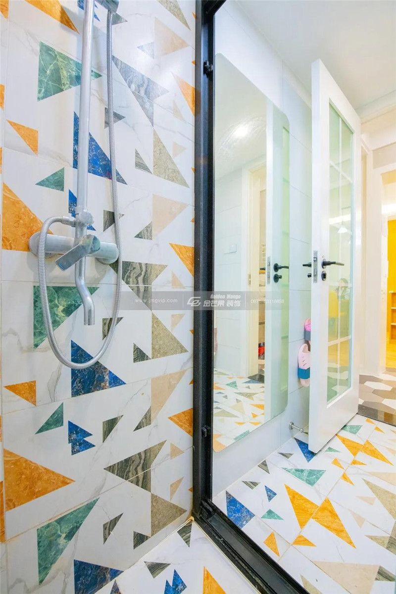 彩色的墻磚,五彩斑斕的顏色和整個(gè)家明媚、可愛的格調(diào)相配合,呈現(xiàn)輕松、愉快的家居氛圍。在家里,不管是爸爸媽媽還是孩子,都可以肆無忌憚,一起做純真的小可愛。