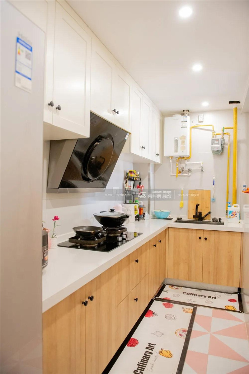 可愛的廚房也少不了卡通元素的加持,印有卡通圖案的地毯在業(yè)主家里隨處可見,往往就是這些看似簡(jiǎn)單的小細(xì)節(jié),將生活裝點(diǎn)得五顏六色。